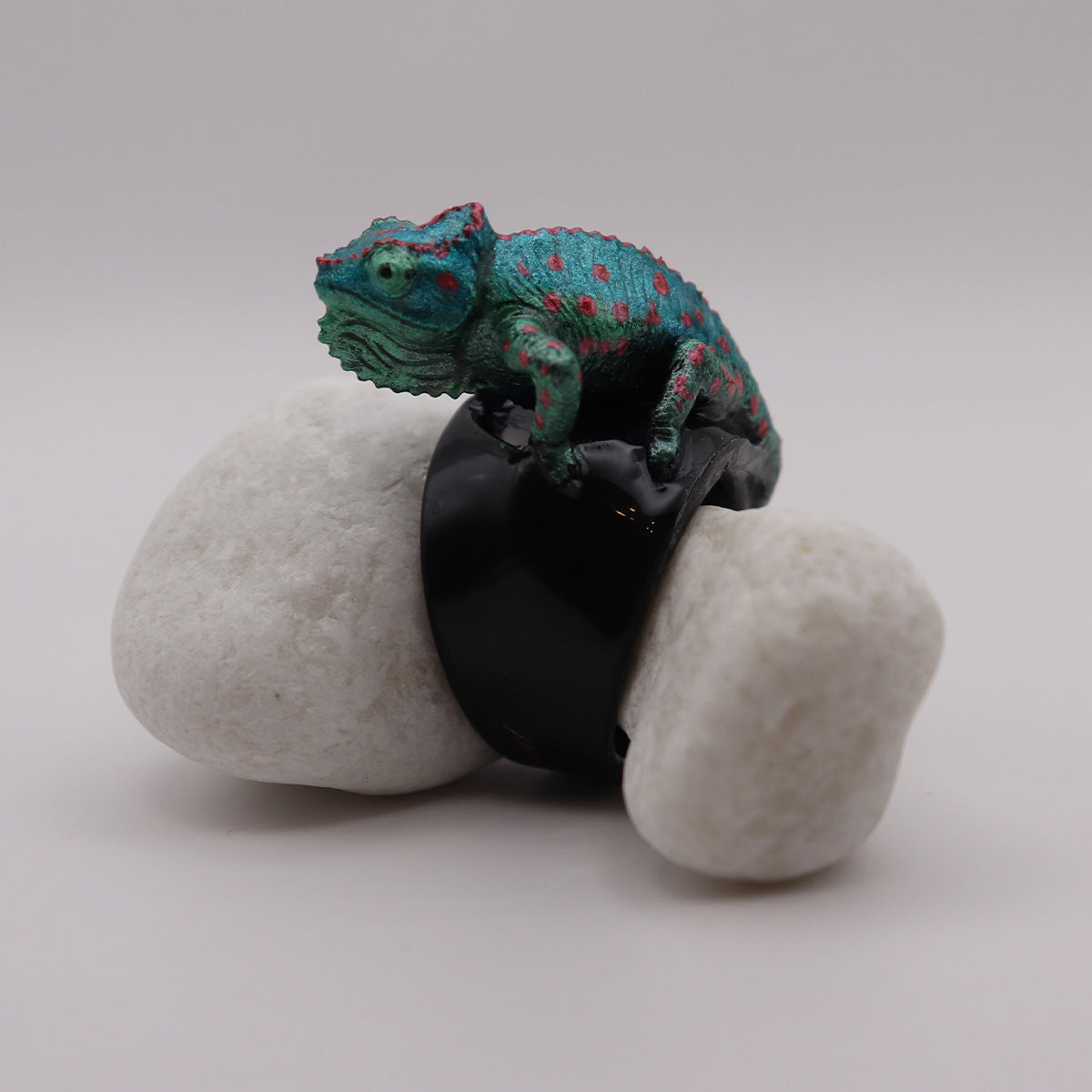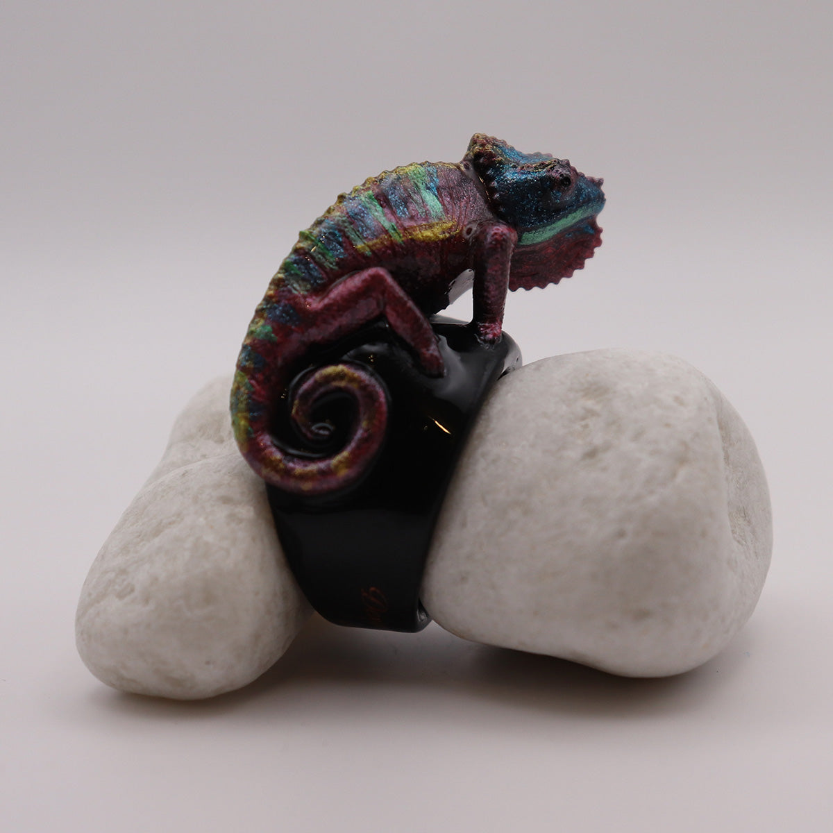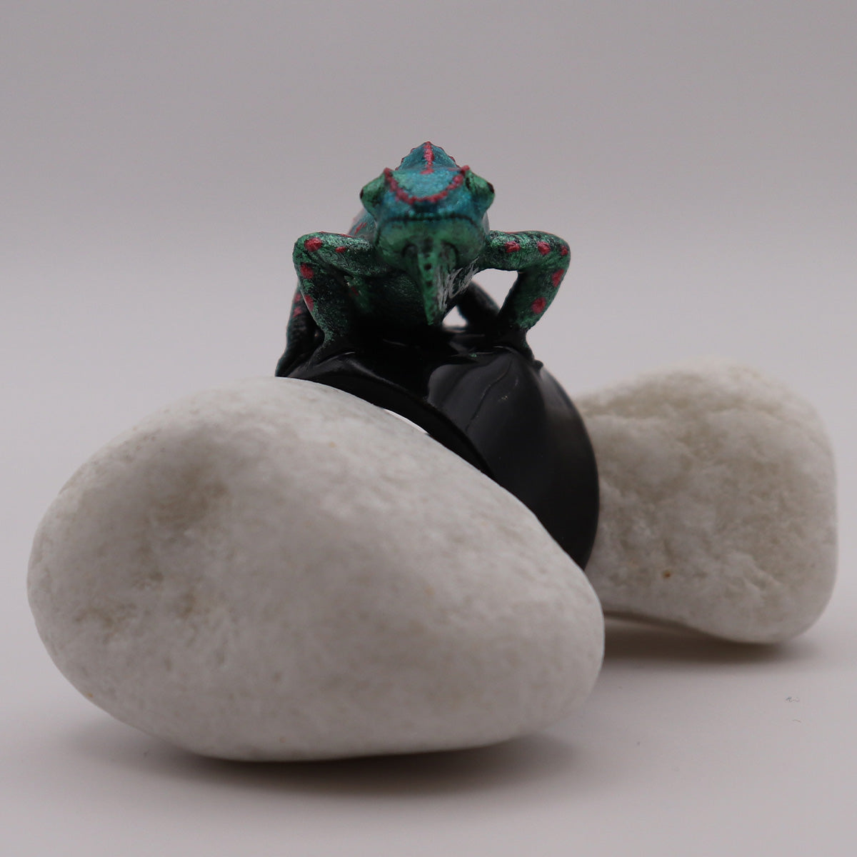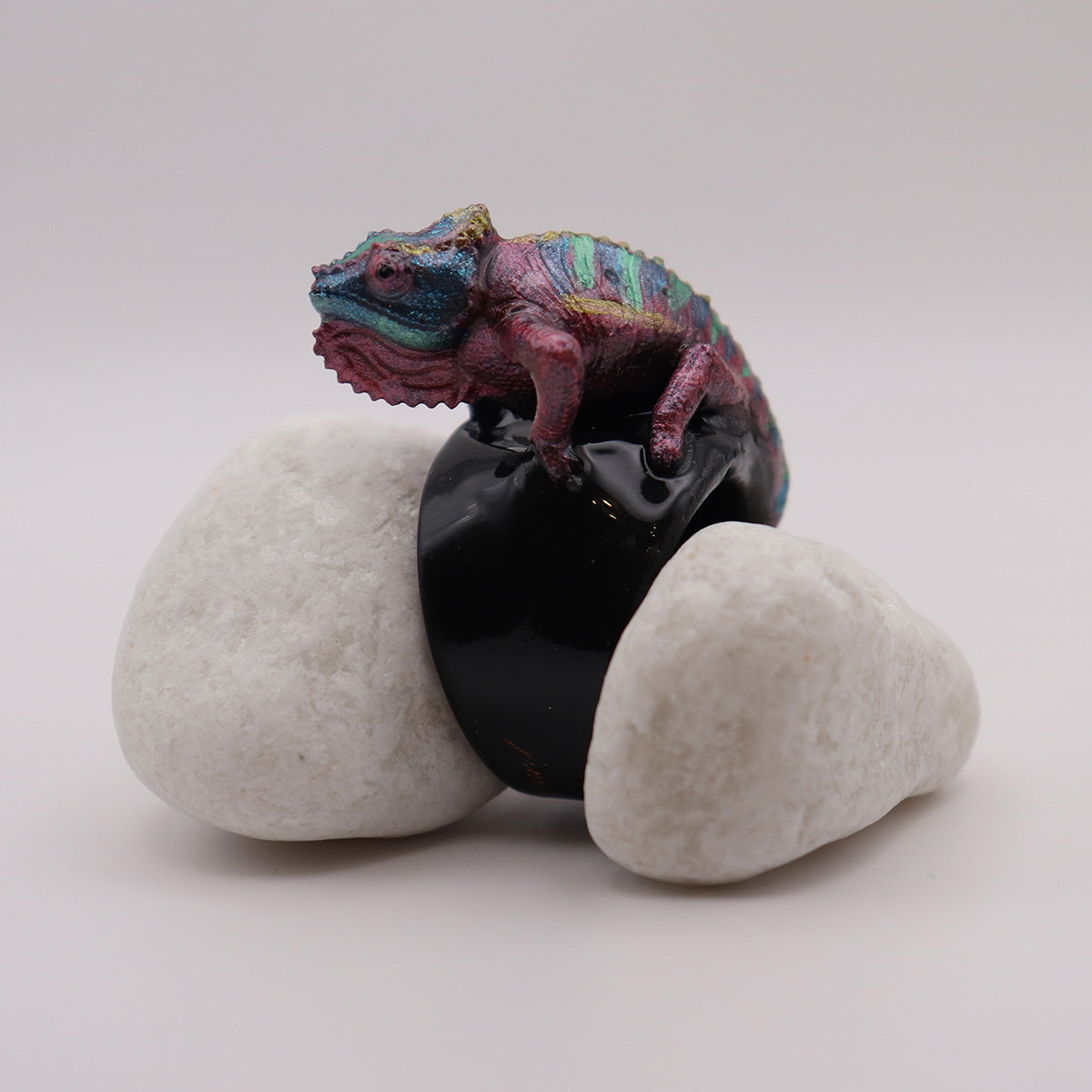Un maestro del disfraz y la paciencia. Amaru se adhiere al dedo como si fuera una rama, listo para cambiar de piel y de historia. Su textura minuciosa y sus tonos vibrantes recuerdan que todo en la naturaleza está en constante mutación.